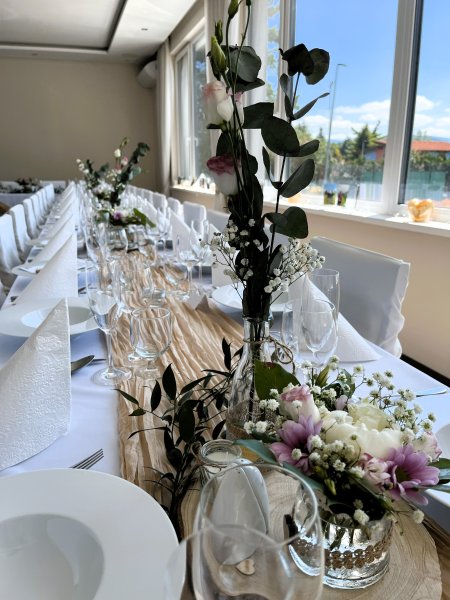 Vyberte si ideálny priestor v závislosti od počtu svadobných hostí a od spôsobu sedenia. V našom hoteli je možné usporiadať svadobnú hostinu v sále s kapacitou do 72 osôb (s druhou sálou 88 osôb) alebo v salóniku s kapacitou 40 osôb. Pod jednou strechou vám zabezpečíme nezabudnuteľný gastronomický zážitok, ubytovanie pre Vašich hostí ako aj výzdobu priestorov. Priestory sú taktiež vhodné na uskutočnenie rôznych rodinných stretnutí, ako sú oslavy narodenín, promócií, krstov, ale i stretávky. Vybrať si môžete zo širokej ponuky menu, nápojov a kvalitných vín.